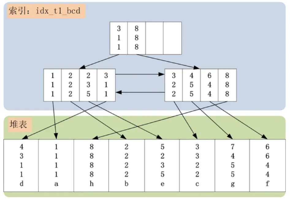 idx_t1_bcd索引上有[b,c,d]三个字段(若是InnoDB类的聚簇索引表,idx_t1_bcd上还会包括主键a字段),idx_t1_bcd索引,首先按照b字段排序,b字段相同,则按照c字段排序,以此类推。
