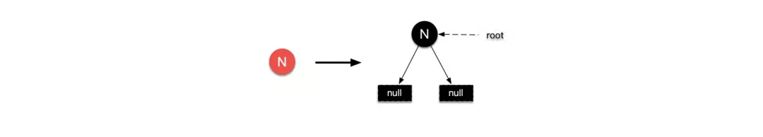 根据红黑树性质第二点,红黑树根节点为黑色,即将插入节点修改成黑色即可;处理:插入节点 N 变成黑色节点并设置为根节点