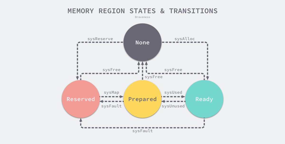 | Reserved | 运行时持有该地址空间,但是访问该内存会导致错误 |