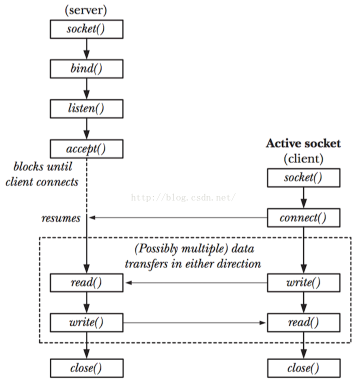 Internet domain socket用于实现不同主机上的进程间通信,大部分情况下我们所说的socket都是指internet domain socket