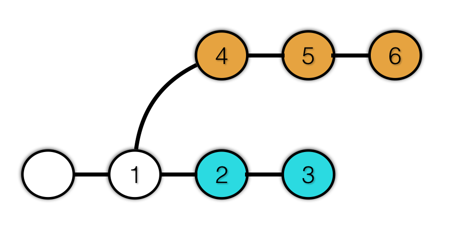 图上的情况,并不是移动分支指针就能解决问题的,它需要一种合并策略。首先,我们需要明确的是谁和谁的合并,是 2,3 与 4,5,6的合并吗?