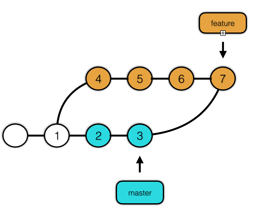 说到分支,我们总会联想到线,就会认为是线的合并。其实不是的,真实合并的是 3 和 6。因为每一次提交都包含了项目完整的快照,即合并只是 tree 与 tree 的合并