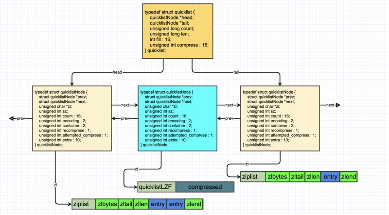 ziplist组成的双向链表。但是一个quicklist可以有多个quicklist节点,它很像B树的存储方式。是在redis3.2版本中新加的数据结构,用在列表的底层实现