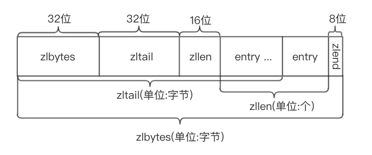 ziplist没有明确定义结构体,这里只作大概的演示: