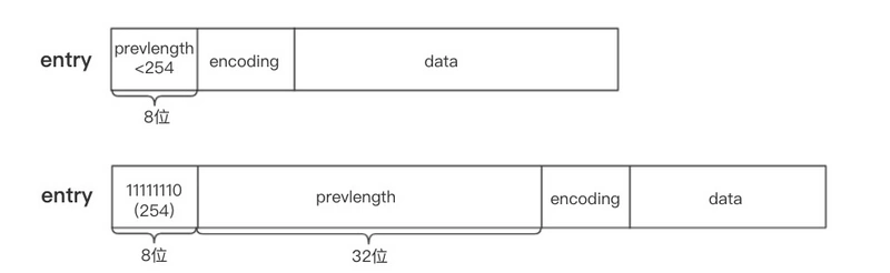 上面有说到,previous_entry_length这个字段存放上个节点的长度,那默认长度给分配多少呢?Redis是这样分的,如果前节点长度小于254,就分配1字节,大于的话分配5字节,那问题就来了;