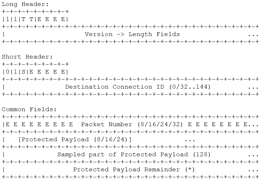 Long Packet Header用于首次建立连接;Short Packet Header用于建立连接后传输数据