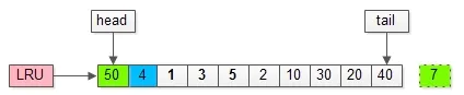 LRU头部,同时淘汰尾部页号为7的页;
